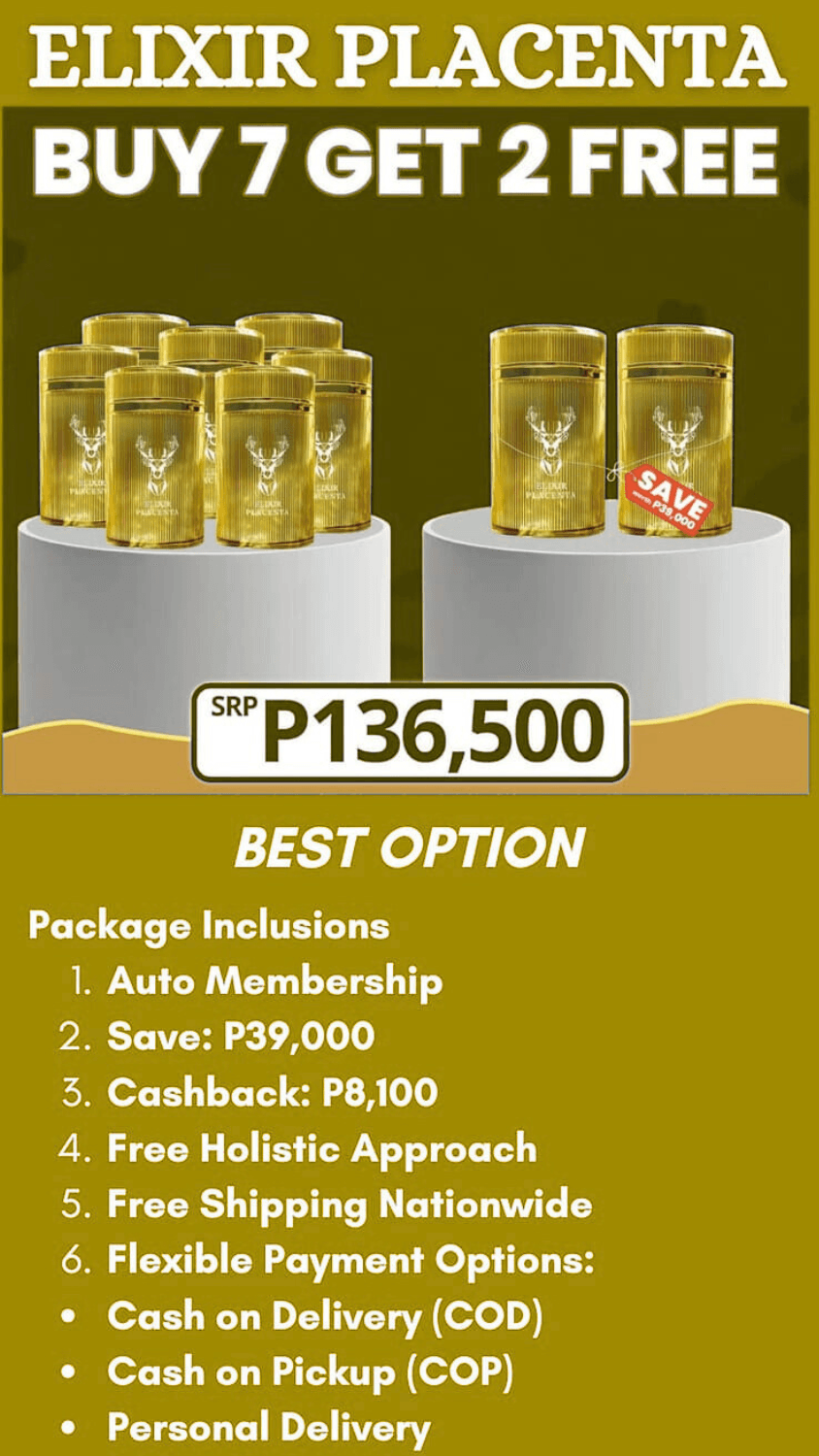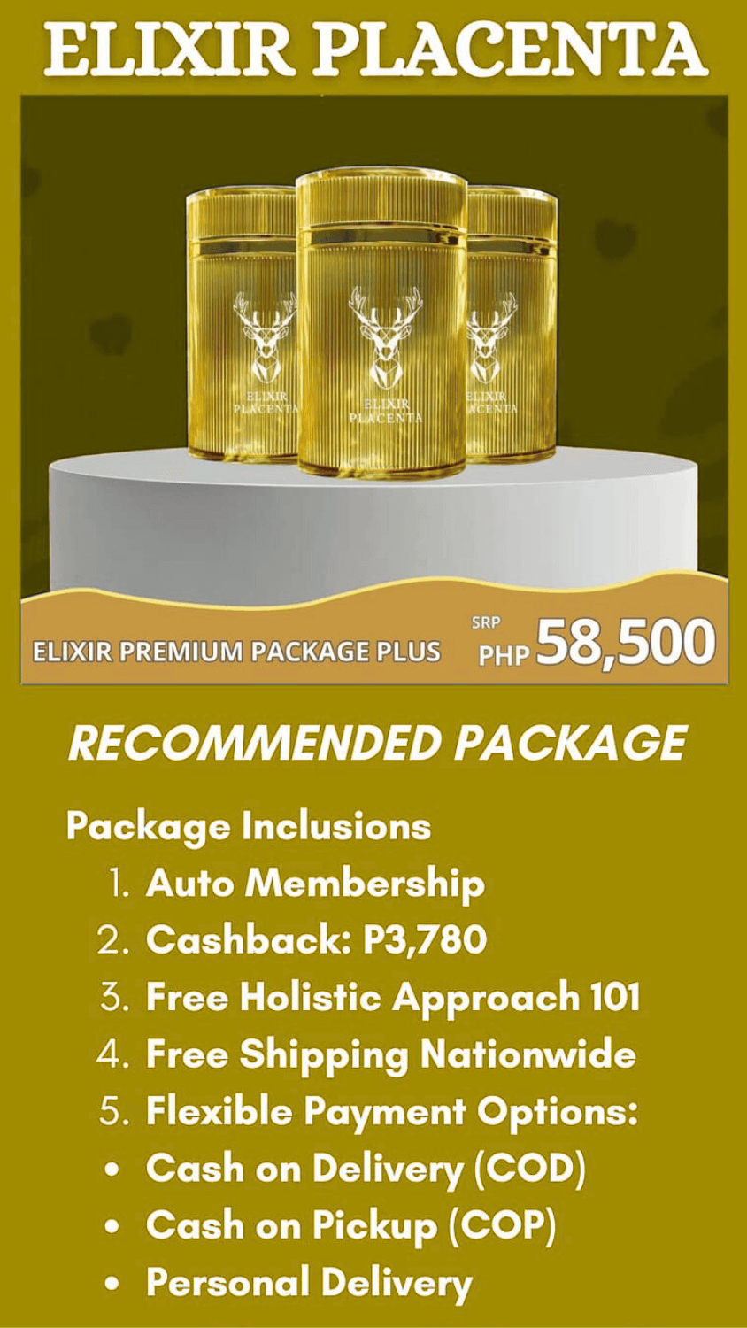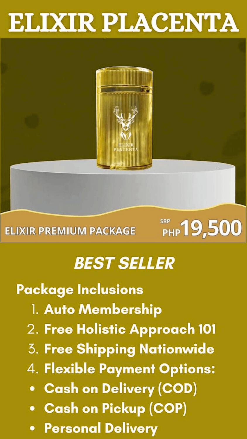 ATTENTION: Ready ka na ba for the next level of health and beauty? With Elixir Placenta - experience youthful glow, all-day vitality, at confidence na kita inside and out!